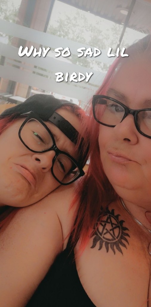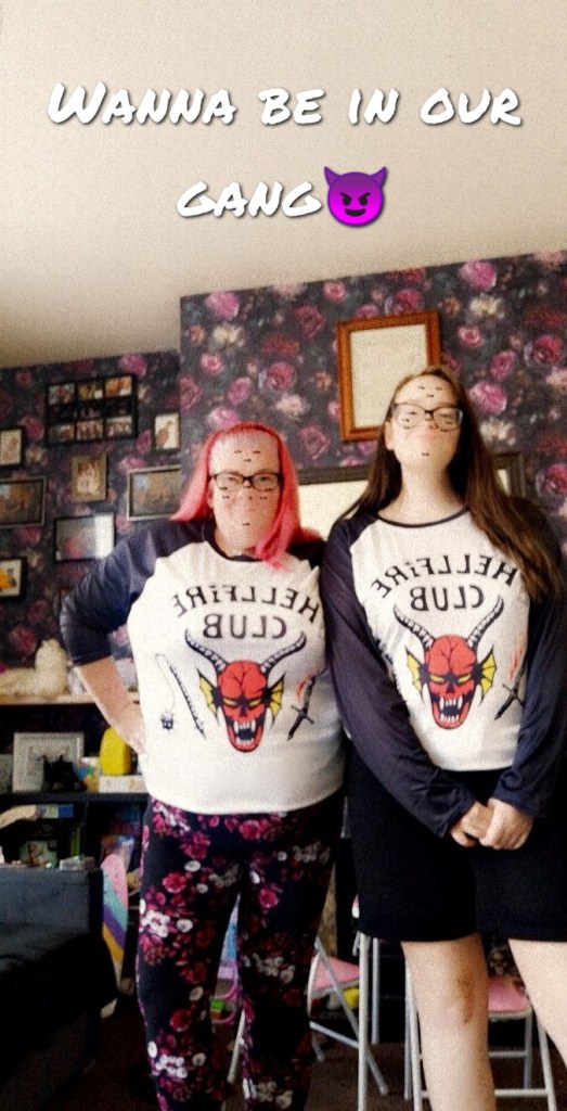 Our matching tops, we are sad I know but cute also….ha ha ha ….why does she pull this face so often.