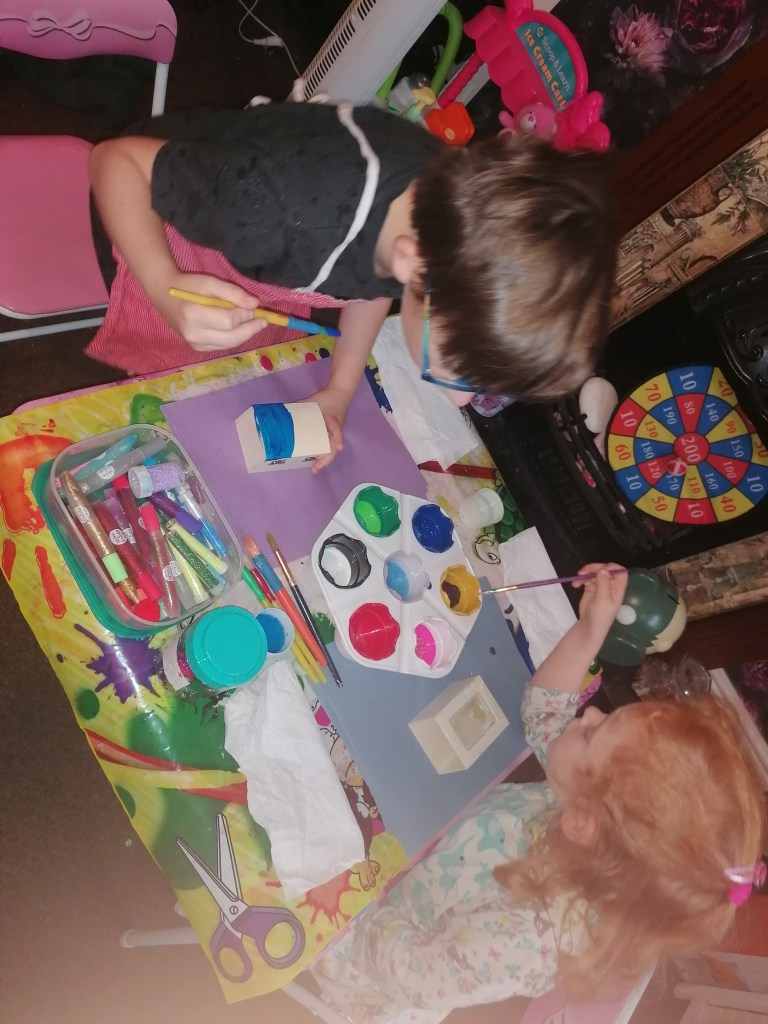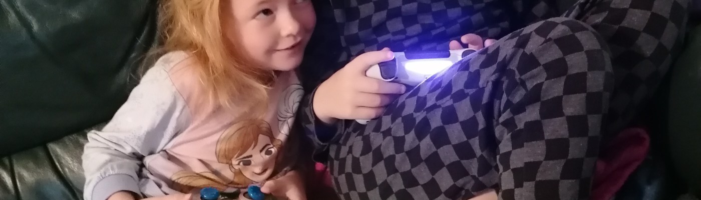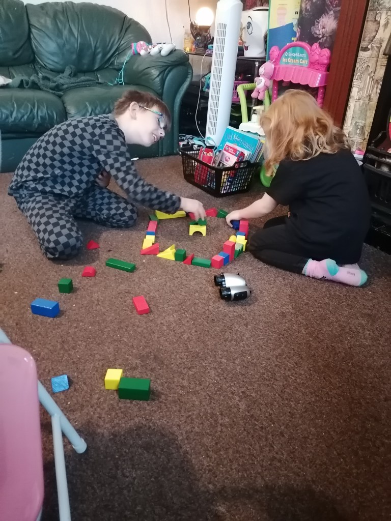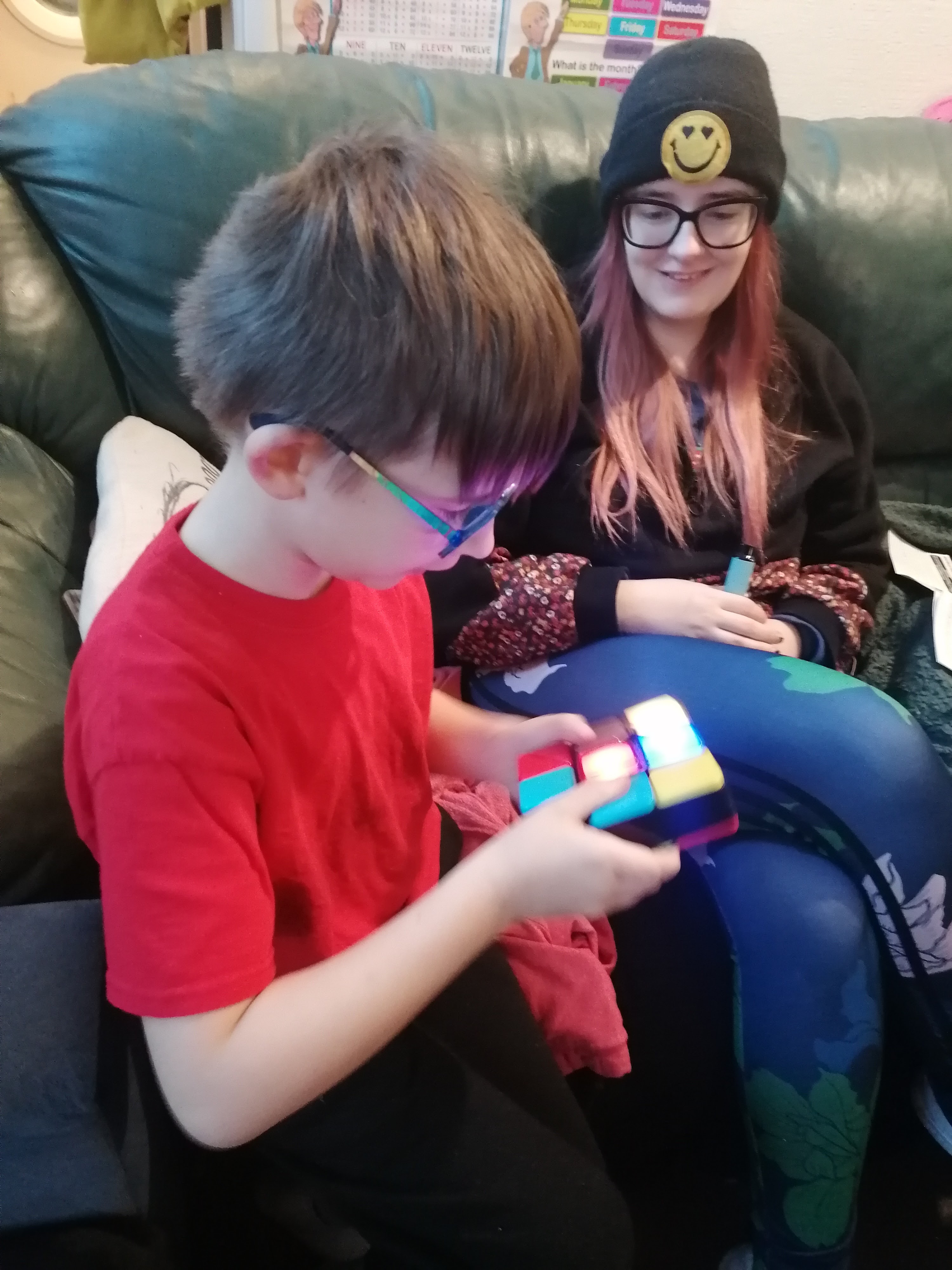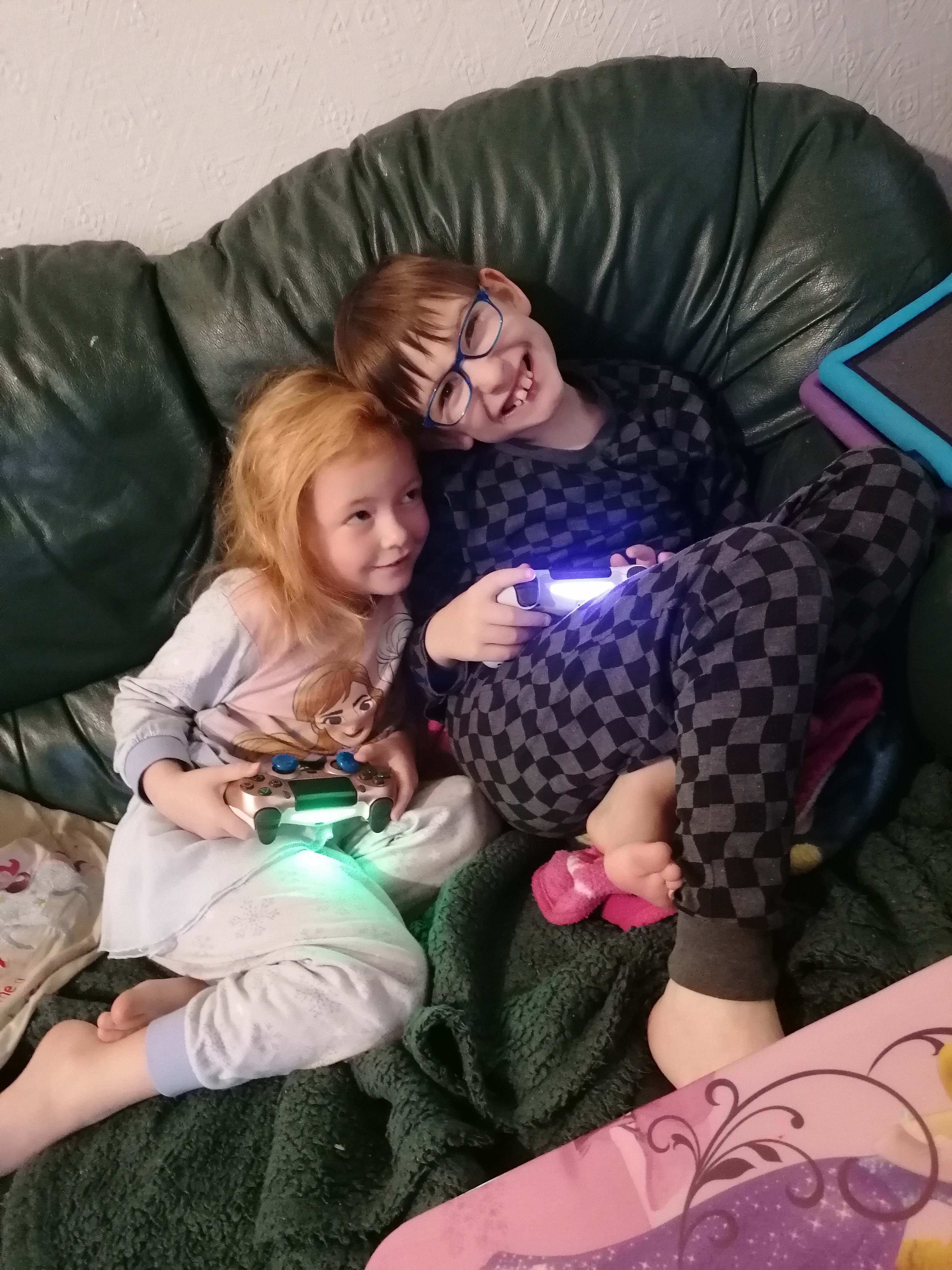 Playing Minecraft, oh, and posing for a photo. These two are just too cute. I love them so much.