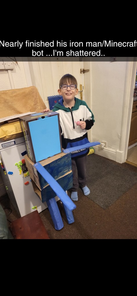 Warren is reading The Iron Man at school. so seemed like a fitting idea to make a robot like man/woman.